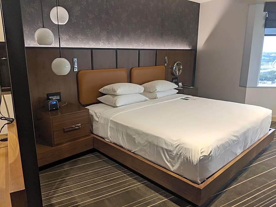 This room features a refrigerator, a coffee/tea maker and a work area. It includes a 65-inch flat-screen TV with streaming service, a Bluetooth alarm clock/charging station, an in-room safe and ironing facilities. The bathroom includes a hairdryer and Pharmacopia® all-natural bath amenities.